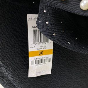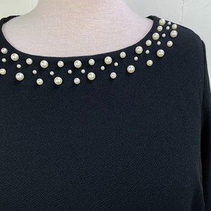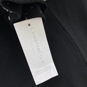 NWT Charter Club Black Blouse w/ Faux Pearls 3X
