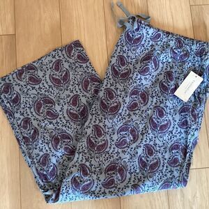New with tags. Charter Club, a Macy’s brand, women’s capri length soft cotton pj pants. Blue background with pink and navy floral print all over. Fully elasticized waistband with decorative (no working) tie bow. Available in Sizes XS and XXL. Showing photos of front and back sides along with fiber contents and care tags. Working side slit pockets.