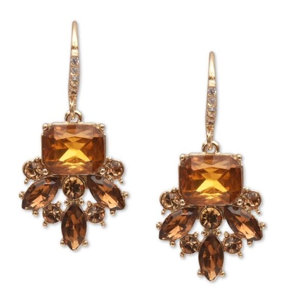 NWT Charter Club Gold-Tone Colored Crystal & Stone Drop Earrings