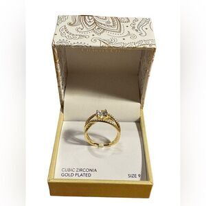 NWT Charter Club Gold-Tone Cubic Zirconia Overlap Open Ring size 9