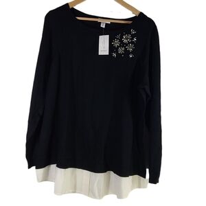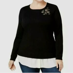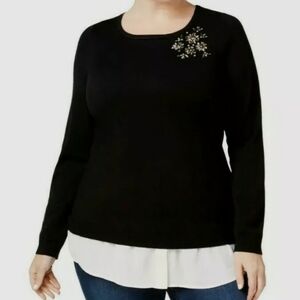Charter Club Layered Look Brooch Sweater Top Sz 0X