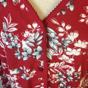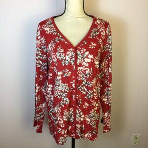 NWT Charter Club Pajama Top XL Womens Red Floral Long Sleeve Button Front V-neck