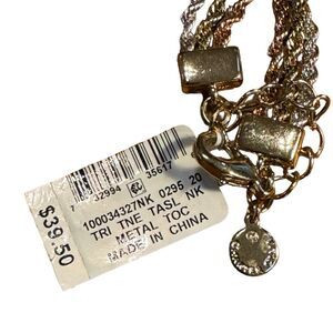 NWT Charter Club Tri-Tone Multi-Chain Knotted Lariat Necklace, 30”+ 2”
