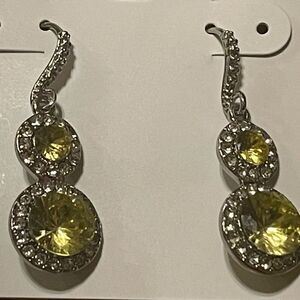 NWT Charter Club dangle yellow crystal Earrings silver tone