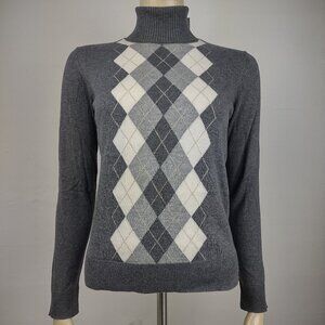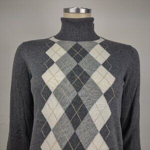 NWT Charter Club gray argyle cotton blend turtleneck pullover sweater Small