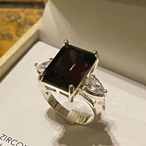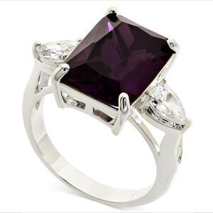 Description: Charter Club Emerald Cut Crystal Ring in Silver Plate, stone is dark purple. Created for Macy's Jewelry & Watches Fashion Jewelry - Rings.