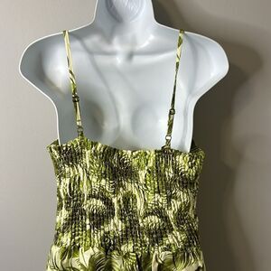 NWT Chaser Boho Tropical Green Palm Leaf Smocked Cropped Pantsuit - Size Medium