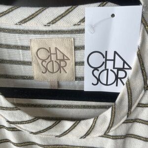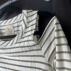 NWT Chaser Cold Shoulder L/S Tee with Stripes, Vanilla, Medium