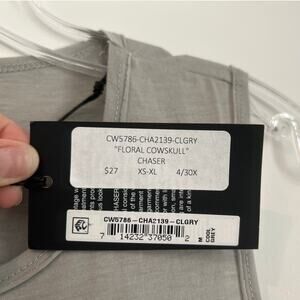 NWT Chaser "Floral Cowskull" Muscle Tank Top, Gray, Women's Medium