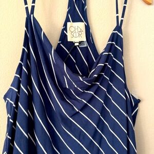 NWT Chaser Halter Cowl Neck Tank Top Navy Bias Stripe XL