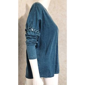 This is a super soft jersey type tee from Chaser. The quality is amazing. It is a lightweight, heathered green color. The long sleeves have a roped, laced up feature about a fourth of the way down. So different. It adds a unique look. Drop shoulder styling. New with tags.