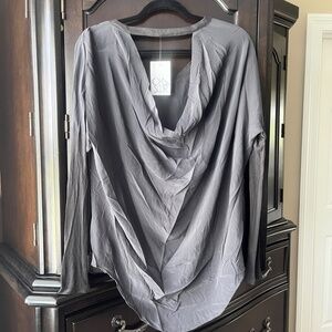 NWT Chaser L/S Drape Back Silk Basics, Grey, Medium