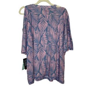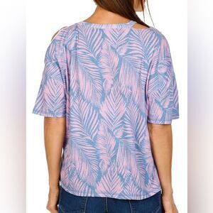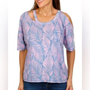 NWT Chaser Leaf Print Cold Shoulder Pink and Blue Top