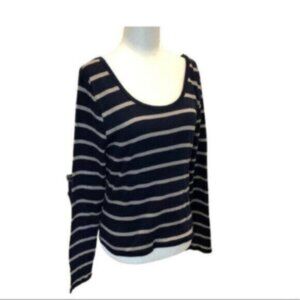 NWT Chaser Navy Blue Stripped Bikercore Top Large