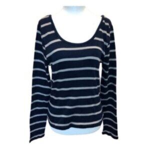 Chaser Women's Navy Blue Stripped Scoop Neck Top