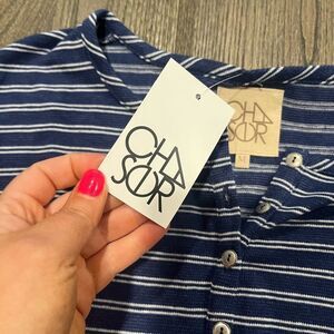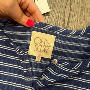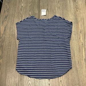 NWT Chaser Navy White Striped Shirttail Cap Sleeve Henley Tee Size M