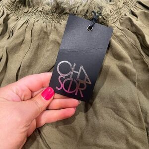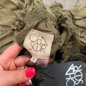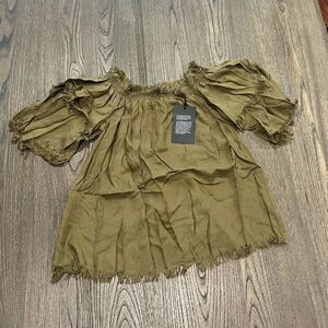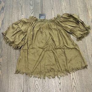 NWT Chaser Olive Green Off Shoulder Frayed Hem Top Size M