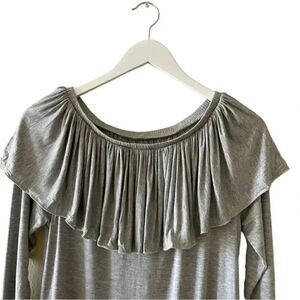 NWT Chaser REVOLVE Heather Gray Knit Jersey Ruffle Off Shoulder Long Sleeves Womens Minimalist Boho Dress SZ M