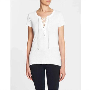 NWT Chaser Short Sleeve Lace Up Hi Lo Rib Tee in Union Black Medium