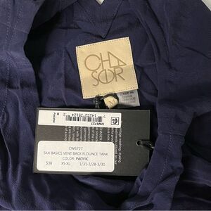NWT Chaser Size M Navy Blue Silk Basics Vent Back Flounce Tank Lightweight Sheer