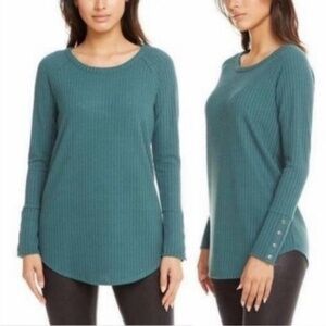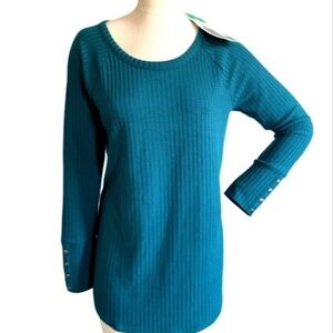 NWT Chaser Waffle Knit Button Cuff Thermal Top Sz XL Teal Blue-Green #218F