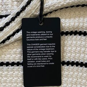 This Chaser striped knit top is a perfect blend of comfort and effortless style. Featuring a scoop neckline, 3/4 sleeves, and a relaxed fit, it’s crafted in a soft textured knit with classic black stripes on ivory. The slightly longer back hem adds an easy, laid-back vibe that works for layering or wearing solo. A versatile piece ideal for casual days, travel, or weekend wear.