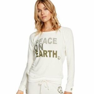 Brand New With Tags, Chaser Peace On Earth Sweatshirt in size small. Super soft material. Crew neck line, long sleeves, ribbed hem and cuffs, peace sign on cuffs, peace sign on back.