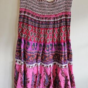 Embrace a bohemian vibe with this vibrant pink patterned skirt. Perfect for adding a pop of color to your wardrobe.