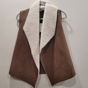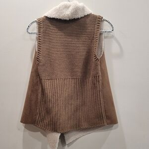 NWT Chelsea & Theodore vest. Coastal cowgirl. Faux fur collar. Knit back. RN 93178. Color - Luggage Brown. Size - S.