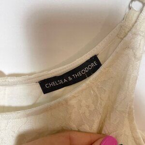Brand new with tags Chelsea & Theodore women’s cami dress in ivory lace floral design, size S. Features a sleeveless silhouette with delicate lace overlay for a feminine and elegant look. Perfect for parties, weddings, or special occasions.