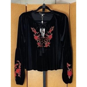 NWT Chelsea & Violet Black Velvet Embroidered Top Size Medium