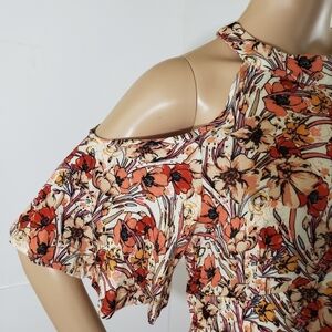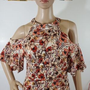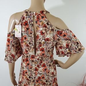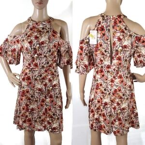 NWT Chelsea & Violet Cream/Burgundy Cut Out Shoulder Floral Halter Dress Sz M