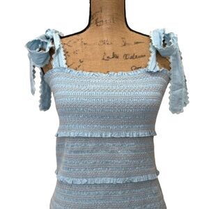 NWT Chelsea & Violet Smocked Mini Dress Ruffle Tiered Mayan Blue Size Large