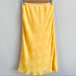 NWT Chelsea & Violet Yellow Silky Floral Slip Midi Skirt