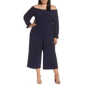 NWT Chelsea28 Size L Long Sleeve Off The Shoulder Smocked Jumpsuit in Blue