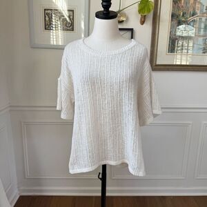 New with tags, Cherish Open Weave Top in off-white. Scoop neck dolman top
