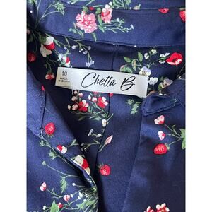 NWT Chetta B Women's Shift Fit Midi Dress Blue 10 Strawberry Floral Novelty Chic