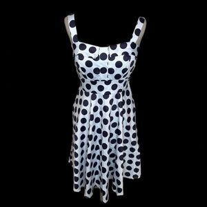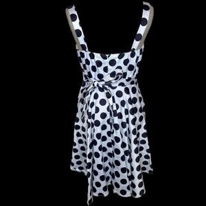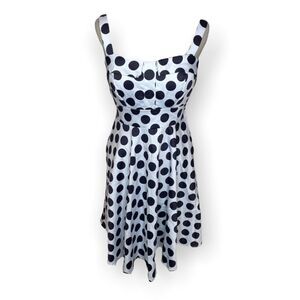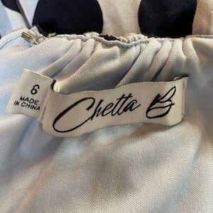 NWT Chetta B Dress size 6. Navy Blue on light blue polka dot design. Comes from a smoke free dog home. Pinup, Rockabilly style. BB4