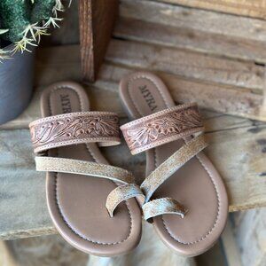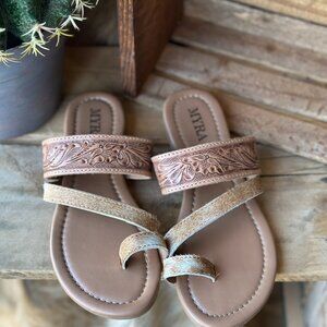 NWT Chevelle Cowhide & Tooled Leather Slide Sandals