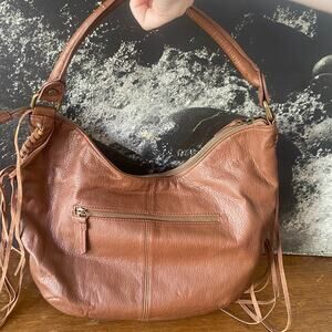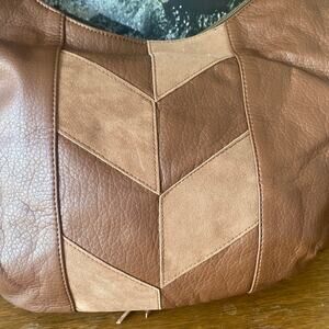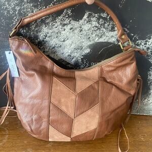 NWT Chevron Pattern Sonoma Leather Camel Brown Shoulder Bag Purse Pockets Zip