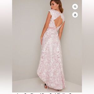 NWT Chi Chi London /Nordstrom Lace Cap Sleeved Open Back Dip Hem Dress (levaeh)