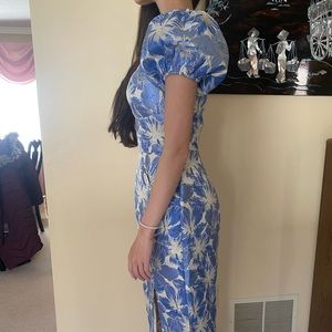 NWT Chi Chi London Periwinkle Floral Jacquard Midi Dress US 2 / UK 6