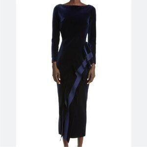 Compliments will pour in when you will make an appearance looking elegant as ever in this classic Modesta ruffled long-sleeve velvet midi dress by Chiara Boni La Petite Robe. A skin-fitted midi dress made from a mix of Velvet, polyester, and elastane giving a fitted yet comfortable feel.