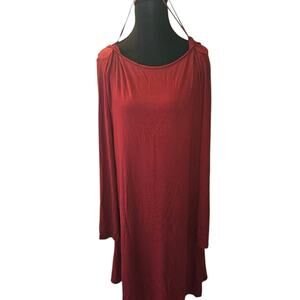 Measurements: 28in arm. 28.5in long. 18in P2P. 35in bottom. Add effortless charm to your wardrobe with this Old Navy red dress, designed in a comfortable knit fabric that feels soft, smooth, and slightly stretchy. This easygoing piece features long sleeves, a relaxed A-line silhouette, and a scoop neckline that flatters the shoulders and neckline. Perfect for casual outings, work-from-home comfort, or weekend wear, this dress blends simplicity with versatility.