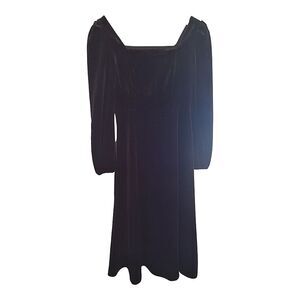NWT Chic Square Neck Plain Black Velvet Midi Dress A-Line Japanese Brand Lined