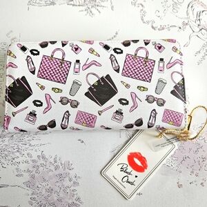 Stylish women's wallet featuring a playful fashion print. The design includes pink and black accents, perfect for adding a touch of fun to your accessories collection.