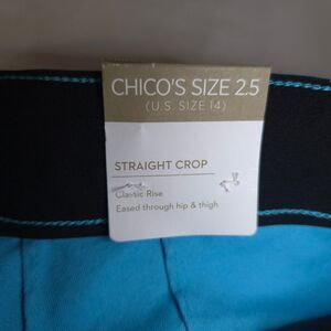 NWT Chico's 2.5 Womens 14 37x24.5 Cyan Blue Soft Chino Crop High Rise Pants