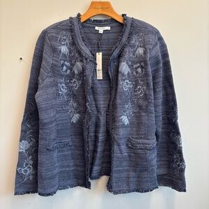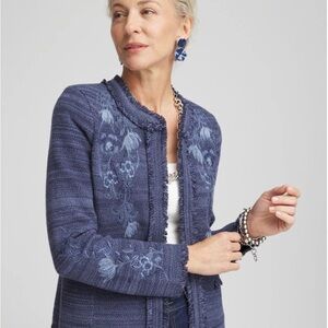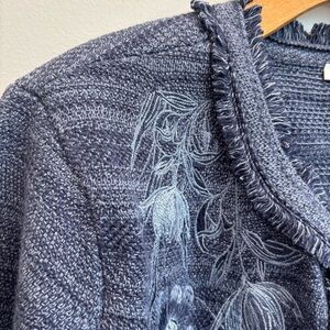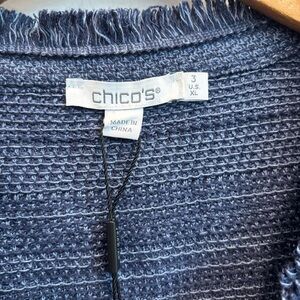 NWT Chico's 3 (XL) Denim Blue Sweater Cardigan Embroidered