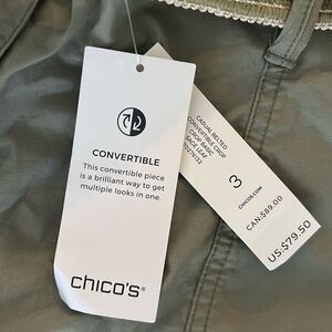 NWT Chicos 3 khaki color lightweight cargo pants convertible wear multiple ways