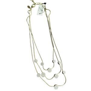 NWT Chicos 3 strand gold tone chain silver rhinestone necklace New with tag